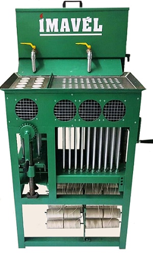Apresentando tecnologia nacional, o portfólio de máquinas da Imavel inclui modelos para fabricação de velas palito (maço) e também 2 em 1, para fabricação de velas 7 dias e maço simultaneamente, em um único equipamento.